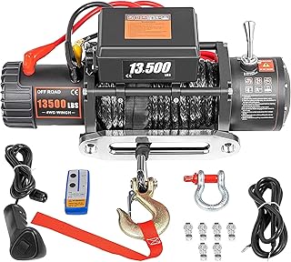 VEVOR 27 m Kabel Elektrische Seilwinde 13500 lb(6123,5 kg),elektrische Winde Elektrische Motorwinde 4-Wege Motorwinde, 12V elektrische Seilwinde Funkfernbedienung elektrische Winde mit Zubehör Auto