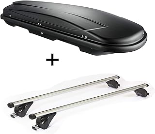 Dachbox VDPJUXT400 400Ltr schwarz abschließbar + Dachträger/Relingträger VDP KING1 kompatibel mit Peugeot 3008 (5 Türer) ab 16