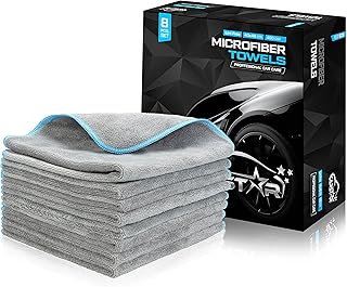 Carstar 8 Mikrofasertücher Autopflege 40 x 40 cm für professionellen Fahrzeugaufbereitung - lackschonend Dank extrem weicher Mikrofaser - Poliertücher mit unfassbarer Aufnahmekapazität (Grau/Blau)