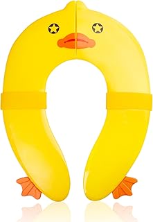 Pejoye Faltbarer Toilettensitz Kinder, Kinder Toilettensitz für Reise, Tragbar Reise WC Sitz Kleinkind Töpfchentrainer mit Aufbewahrungstüte, Süßes Gelbe Ente