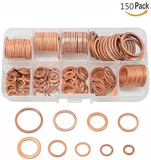 Cisixin 150 Stück Kupfer Unterlegscheiben Dichtung Dichtring mit Aufbewahrungsbox