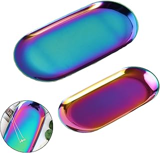 Edelstahl Metall Schmuck Platte Edelstahl Tablett Kosmetik Tablett Ovale Dekotablett Schlüssel Tablett Serviertabletts Kleine Gegenstände Tablett Kleine Gegenstände Serviertabletts(2 Stück Bunt)