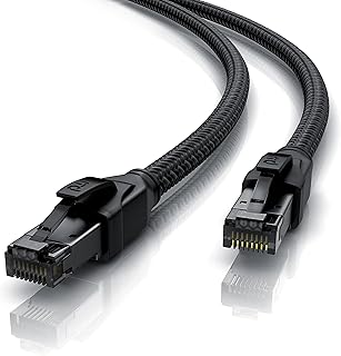 CSL - CAT 8.1 Netzwerkkabel 40 Gbits - 10m - Baumwollmantel - Black Series - LAN Kabel Patchkabel RJ45 - CAT 8 Gigabit Ethernet Cable - 40000 Mbits - S/FTP PIMF Schirmung - kompatibel zu Cat 6 Cat 7